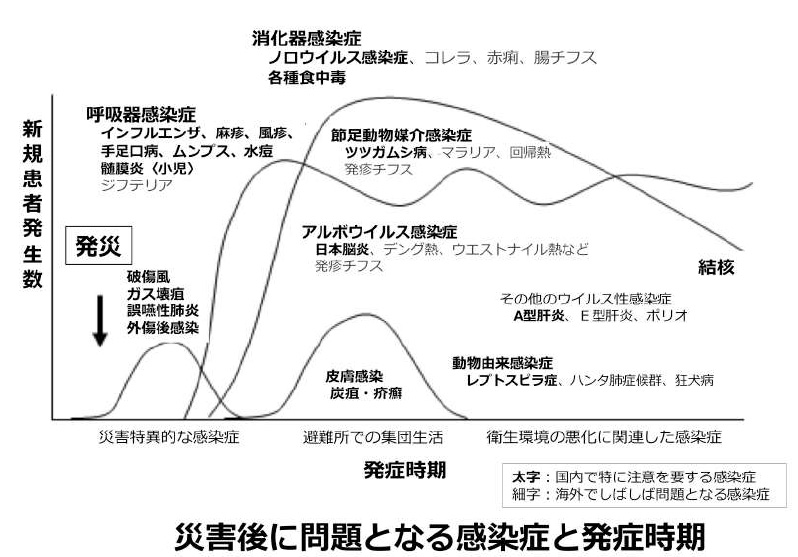出典:日本環境感染学会 大大規模自自然災害の被災地における感染制御マネージメントの⼿⼿引 アドホック委員会 被災地における感染対策に関する検討委員会報告より